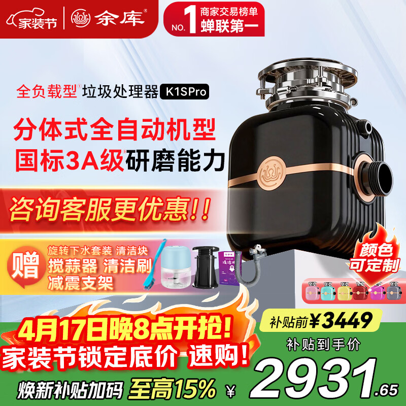 余库K1SPro智能变频垃圾处理器全自动进水家用厨房食物搅碎厨余粉碎机 【K1Spro定制款】咨询了解更多