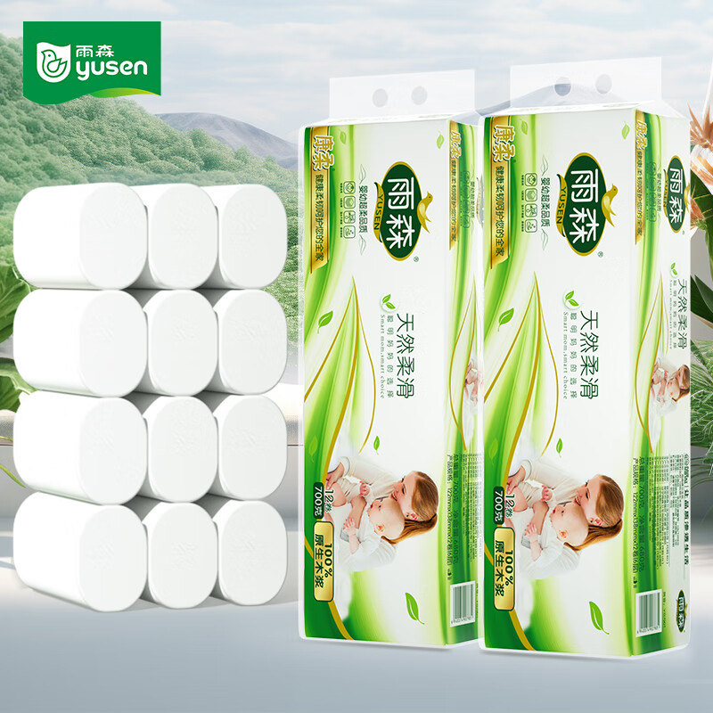 雨森妇婴无芯卫生纸700g6层12卷加厚卷纸厕纸 6层 58g/卷*12卷 *2提