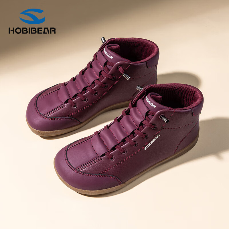 HOBIBEAR高帮赤足鞋宽楦男女同款秋季运动宽头训练男士健身平步鞋 酒红 38