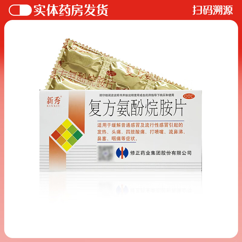 [修正]复方氨酚烷胺片 12片 2盒装 用于缓解普通感冒及流行性感冒引起的发热、头痛、四肢酸痛、打喷嚏、流鼻涕、鼻塞