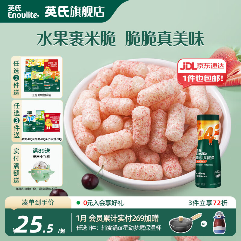 英氏【4阶专区】婴幼儿零辅食 泡芙米饼干奶酪 12-18月龄宝宝零食 果裹泡芙樱桃草莓味