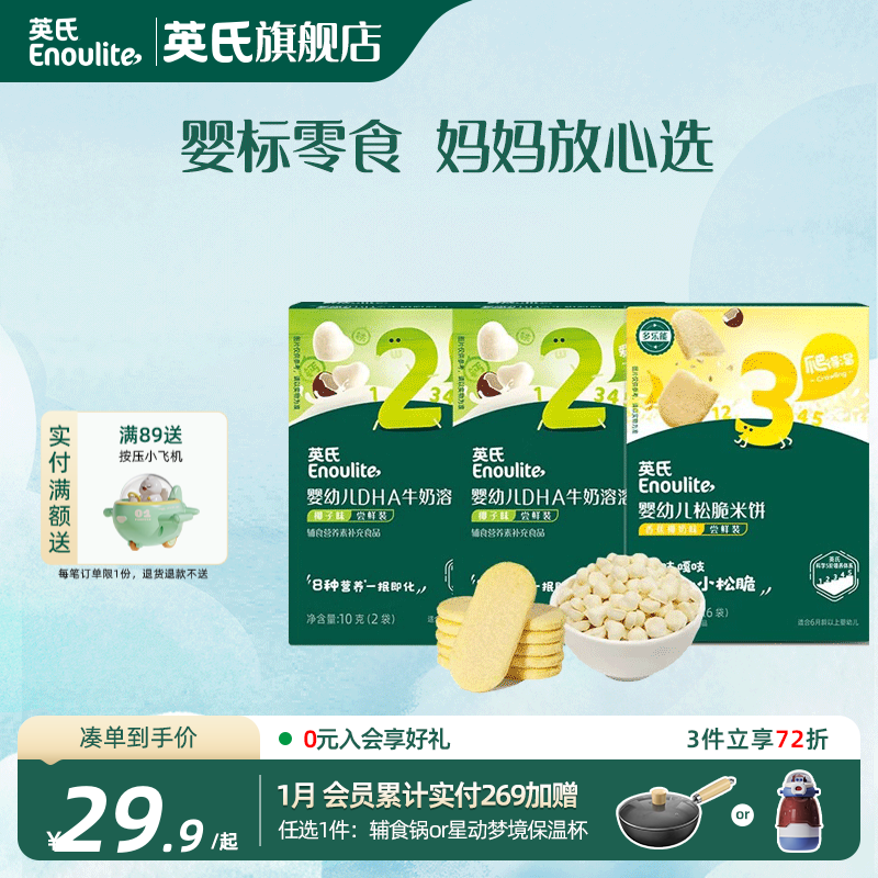 英氏(Engnice)【溶豆专区】溶豆婴幼儿零食水果益生菌DHA牛奶6个月以上 溶豆+米饼 零食尝鲜3件套