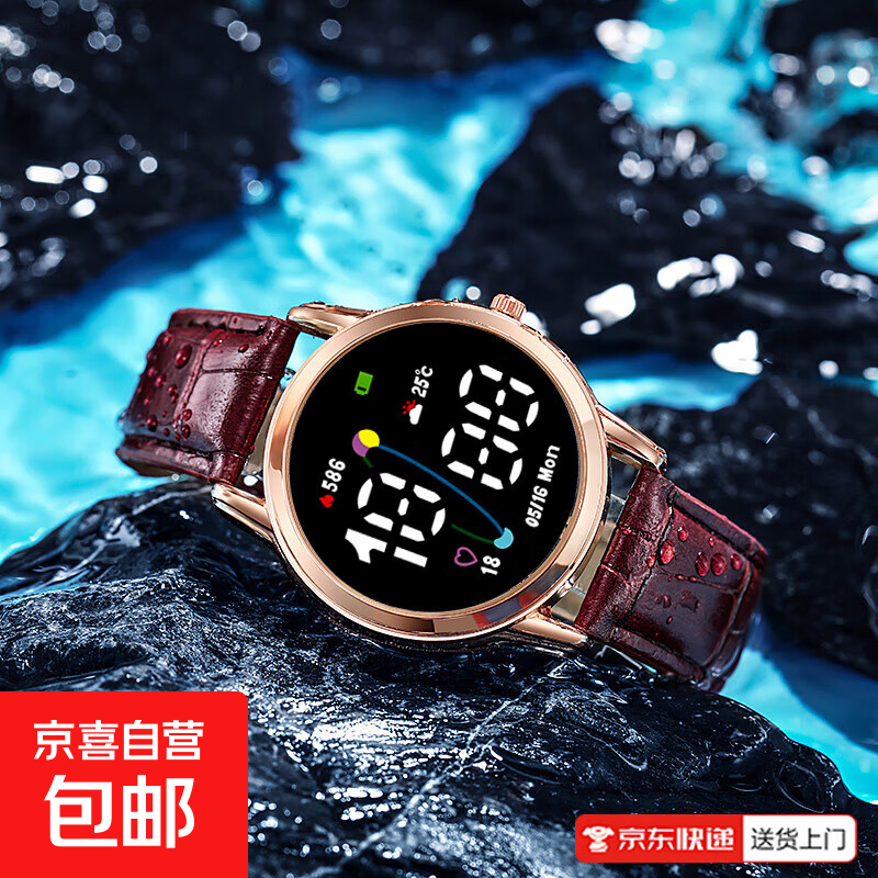 【LED夜光显示】学生潮流时尚时间手表男女学生简约电子表ins风高颜值气质简约韩版手环Y23 本月新品+夜光显示+时间显示-升级款棕皮