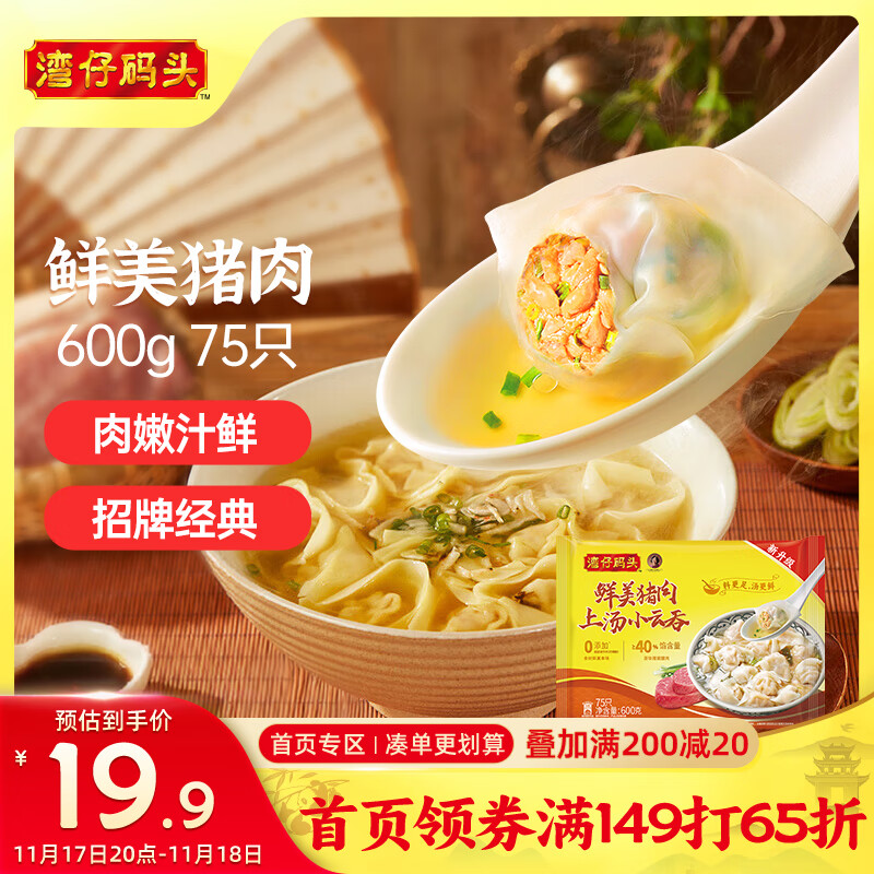 湾仔码头上汤小云吞鲜美猪肉600g75只馄饨早餐夜宵速食冷冻混沌