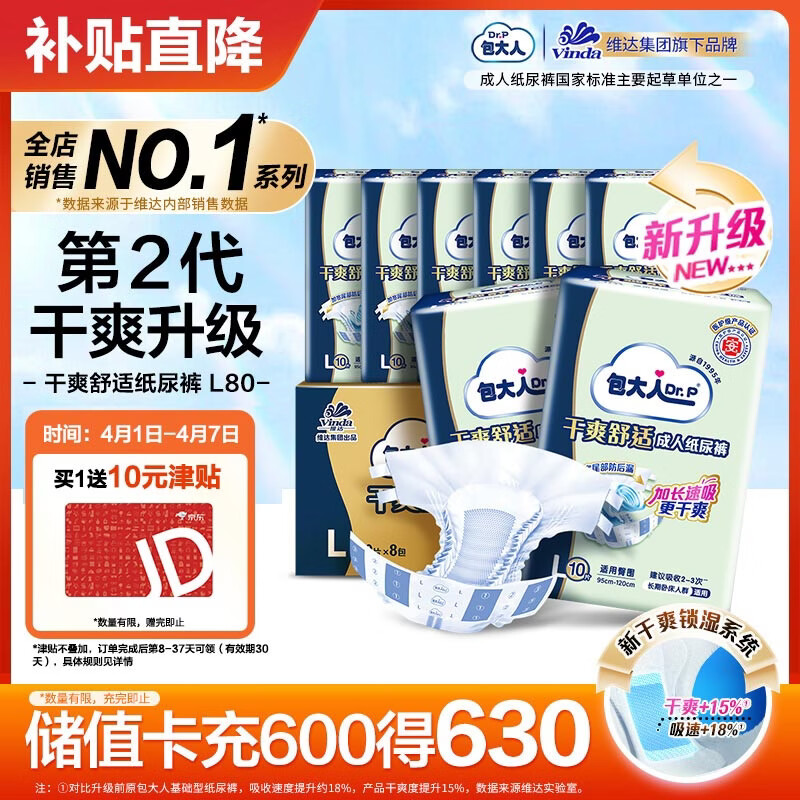 包大人(Dr.P)干爽舒适成人纸尿裤基础型L80片(腰围:85-135cm)老年人产妇尿不湿