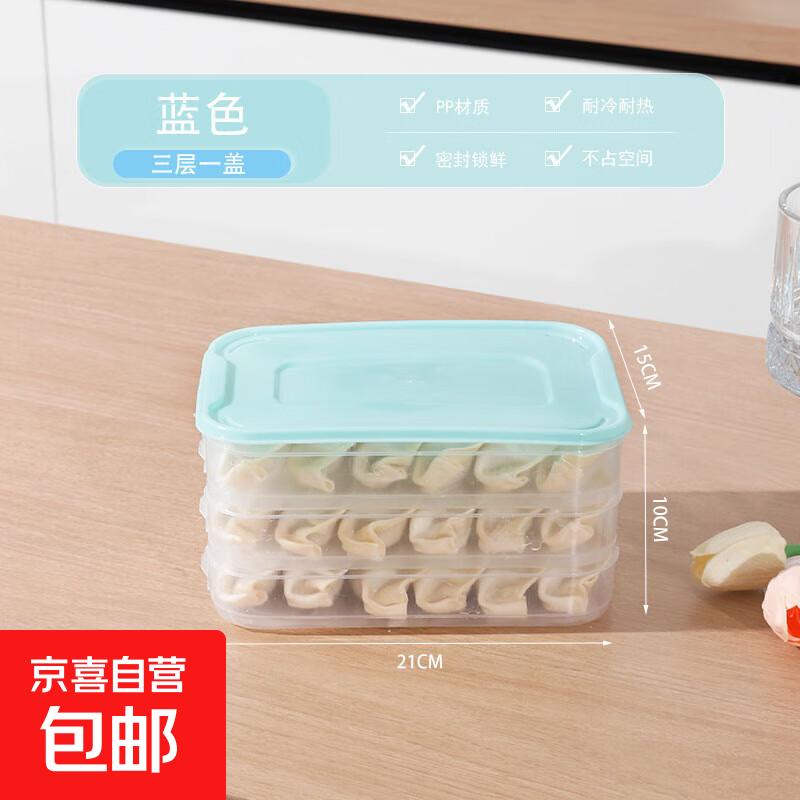 新款饺子盒家用食品级冷冻专用盒密封保鲜馄饨速冻厨房冰箱收纳盒 饺子盒1盖3层(随机色) 马卡龙色盖