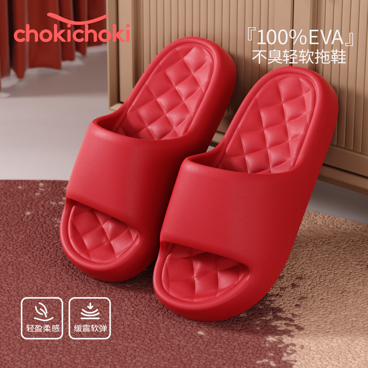 ChokichokiEVA凉拖鞋男夏季厚软底本命年红女居家家用情侣拖鞋防滑不易臭脚 喜庆红 新娘新郎情侣周年庆红 44-45 (280mm)
