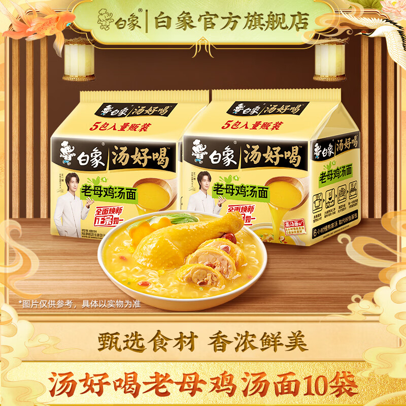 白象 汤好喝方便面老母鸡汤招牌猪骨泡面组合方便速食多口味袋装整箱 老母鸡汤10袋1100g