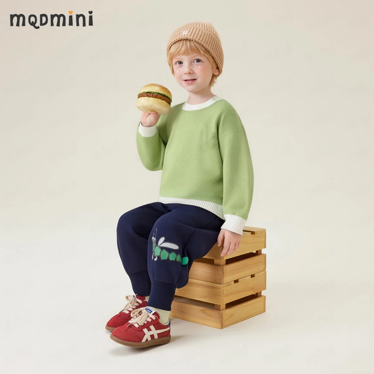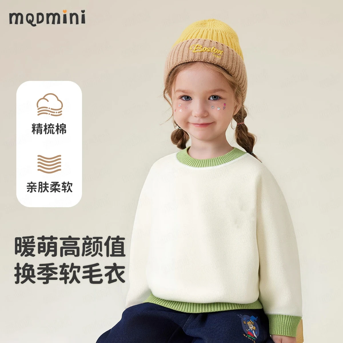 MQDMINI儿童针织衫男女童毛衣撞色新款秋冬1 撞色罗纹牛油果绿领 100