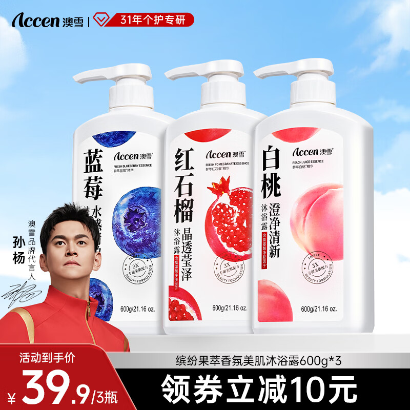 澳雪(accen)孙杨代言 香氛美肌花果香沐浴露套装留香沐浴液 600g白桃+蓝莓+红石榴