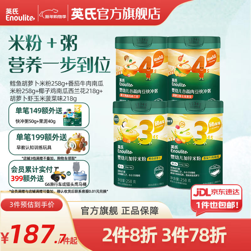 英氏米粉罐装套组婴幼儿高铁米粉6-12个月辅食宝宝营养米糊 【囤货专享】米粉+粥共 952g*1盒