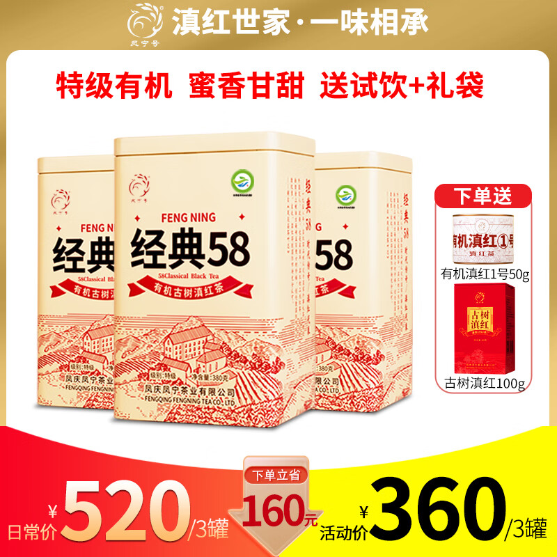 凤宁号红茶经典58特级凤庆滇红茶云南有机古树滇红金针2025新茶叶自己喝 【升级版】3罐装1140g