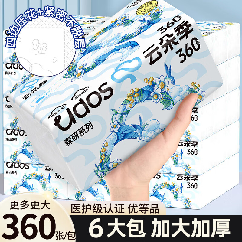 云朵季加厚大包抽纸纸巾整箱优等品质面巾纸医护级家用餐巾纸卫生纸 5层 360张*6包