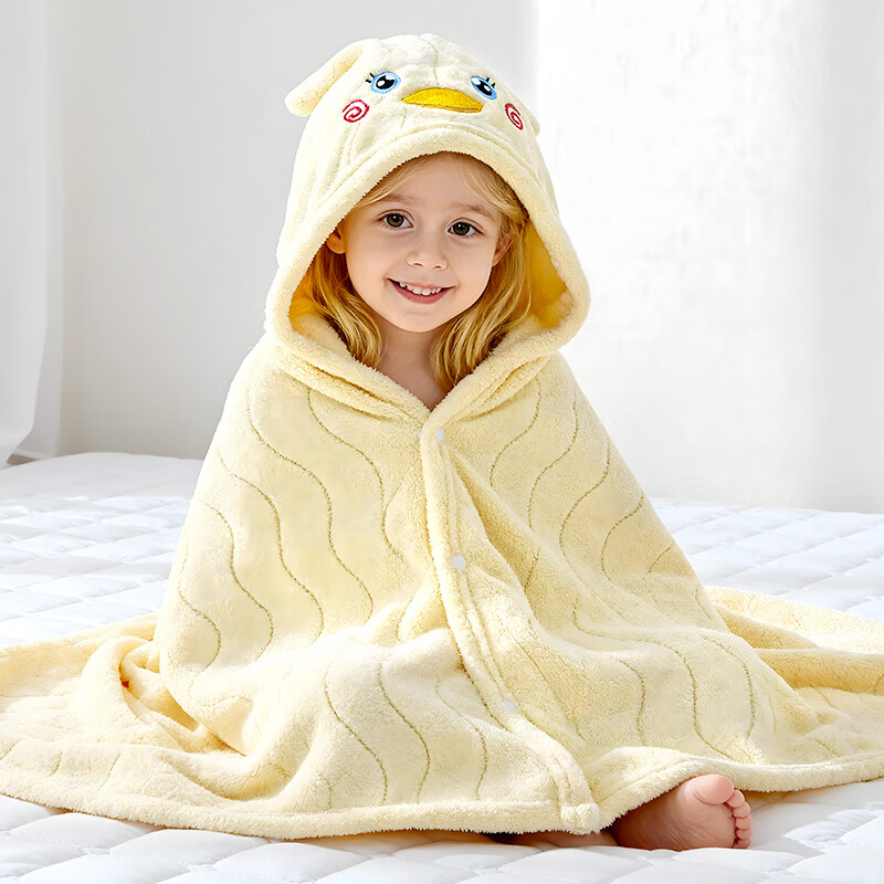 贝舒士婴儿浴巾儿童斗篷浴袍带帽新生宝宝洗澡裹巾速干吸水A类毛巾 黄色小鸡/7A抗菌/秋冬升级加厚款