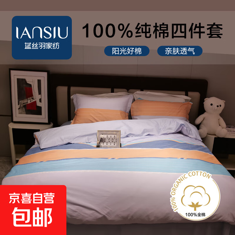 【品牌清仓】蓝丝羽100%全棉四件套纯棉亲肤高端裸睡双人家用件套 卡罗琳 【100%全棉】 1.5/1.8/2米床 床单款 被套2*2.3m