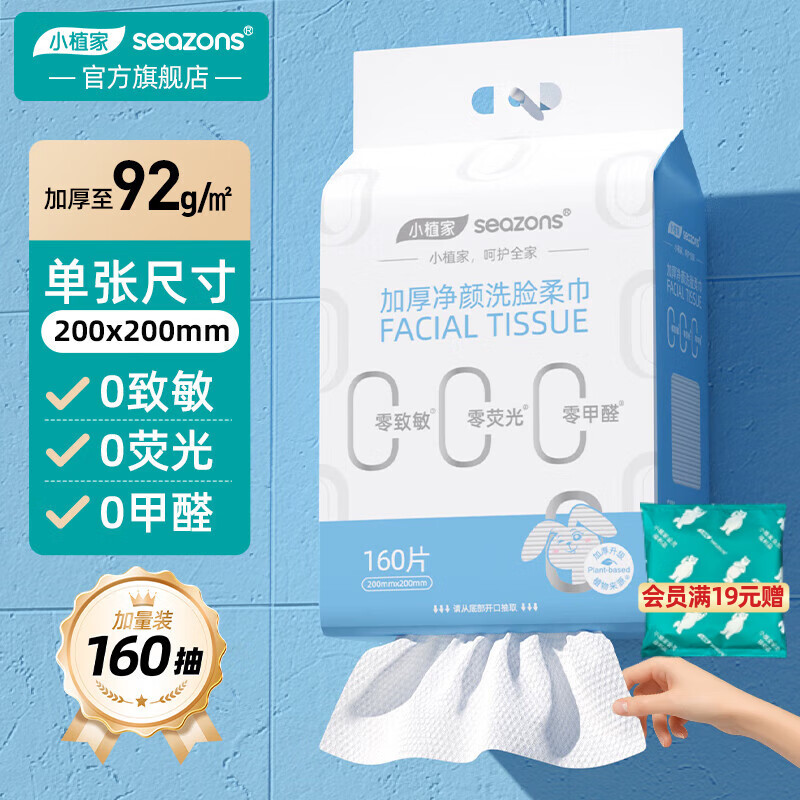 小植家一次性洗脸巾女棉柔巾加大加厚洁面巾吸水擦脸巾 【加厚】160片*1提 加厚款