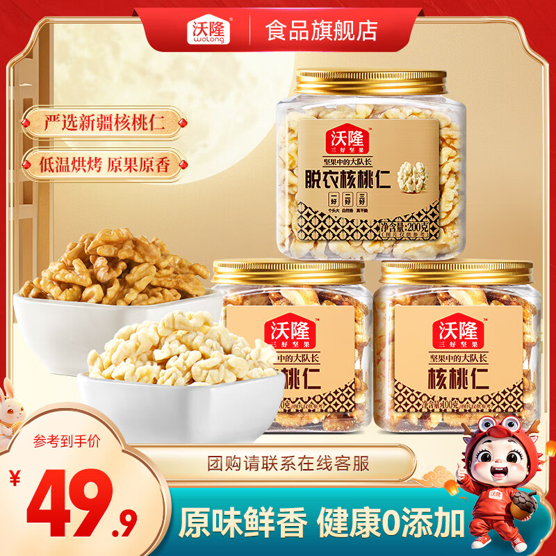 沃隆 每日坚果 核桃仁原味坚果炒货办公室休闲健康孕妇健康零食 200g去皮核桃+100g核桃仁*2