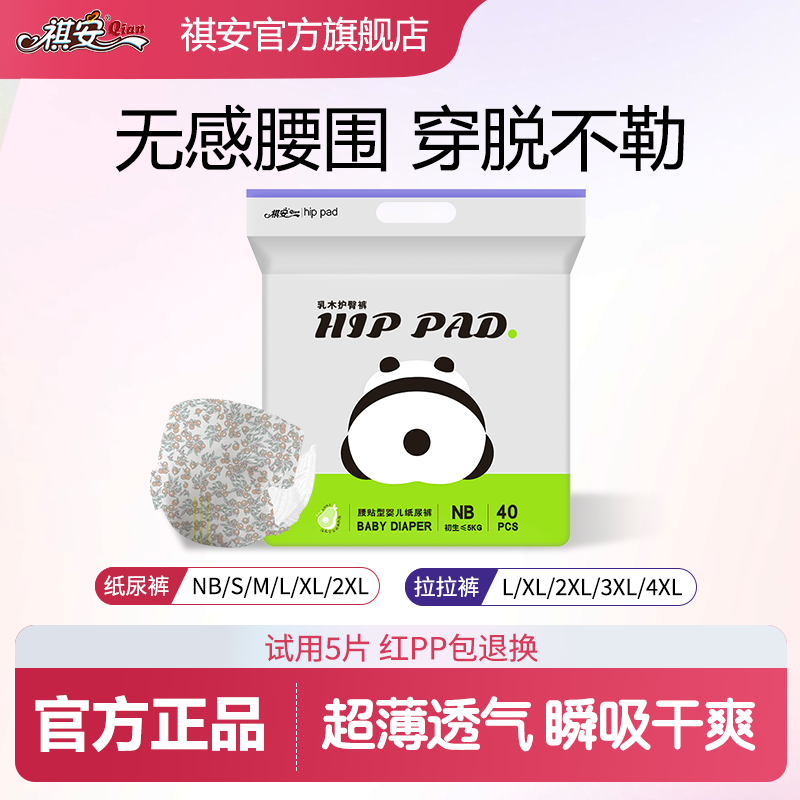 祺安T2熊猫乳木果油宝宝护臀系列柔润透气纸尿裤拉拉裤男女通用尿不湿 【小包装】纸尿裤NB码40片