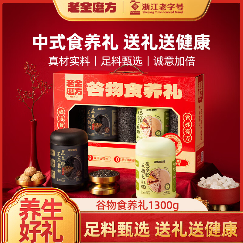 老金磨方黑芝麻糊礼盒送礼过节礼品走亲戚长辈礼物滋补圣诞 【食养爆款】谷物食养礼1.3kg加量不加价黑绿