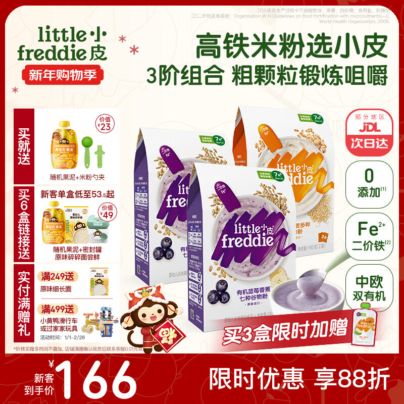 小皮(Little Freddie)高铁米粉有机 婴儿宝宝辅食营养低敏米糊米粉婴儿6个月以上 【7到9月+】蓝莓藜麦多谷物*3盒
