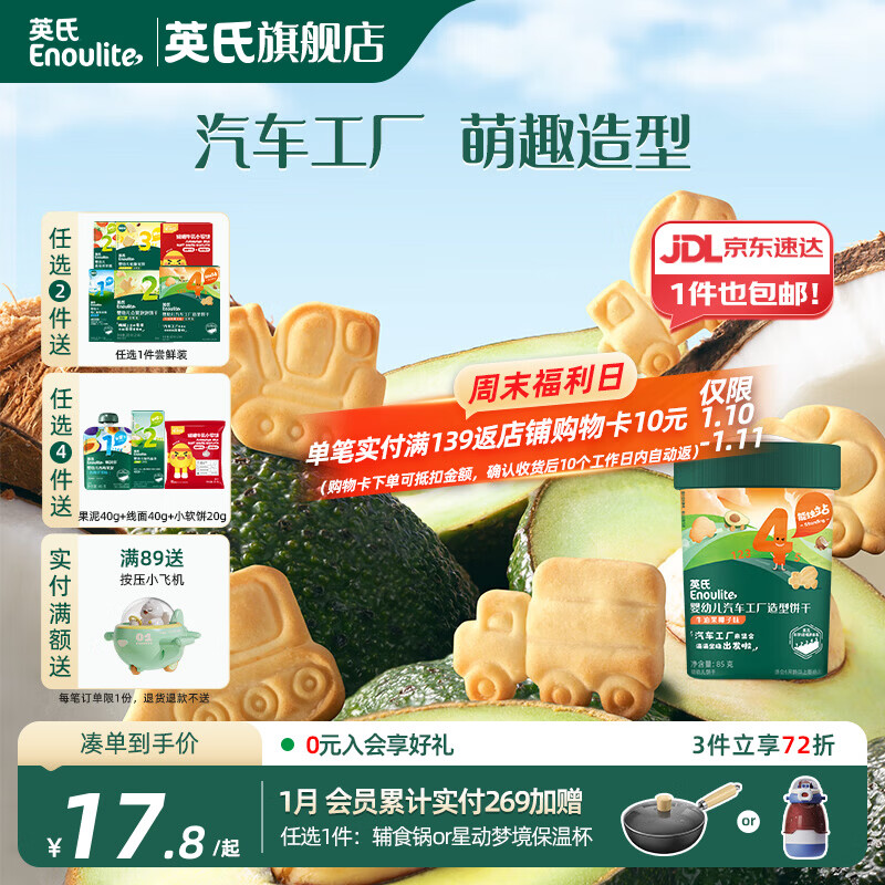 英氏【4阶专区】婴幼儿零辅食 泡芙米饼干奶酪 12-18月龄宝宝零食 宇宙乐园饼干苹果味