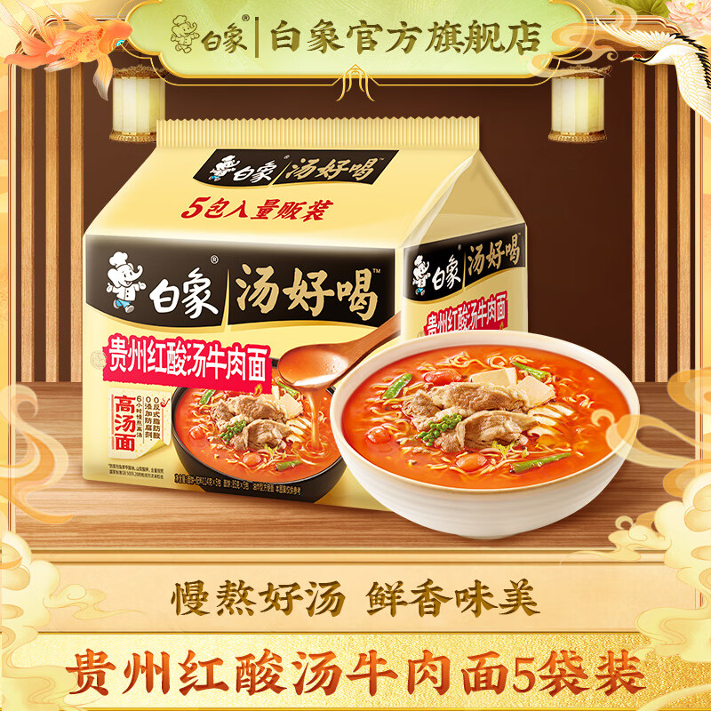 白象 汤好喝方便面老母鸡汤招牌猪骨泡面组合方便速食多口味袋装整箱 红酸汤牛肉114g*5袋