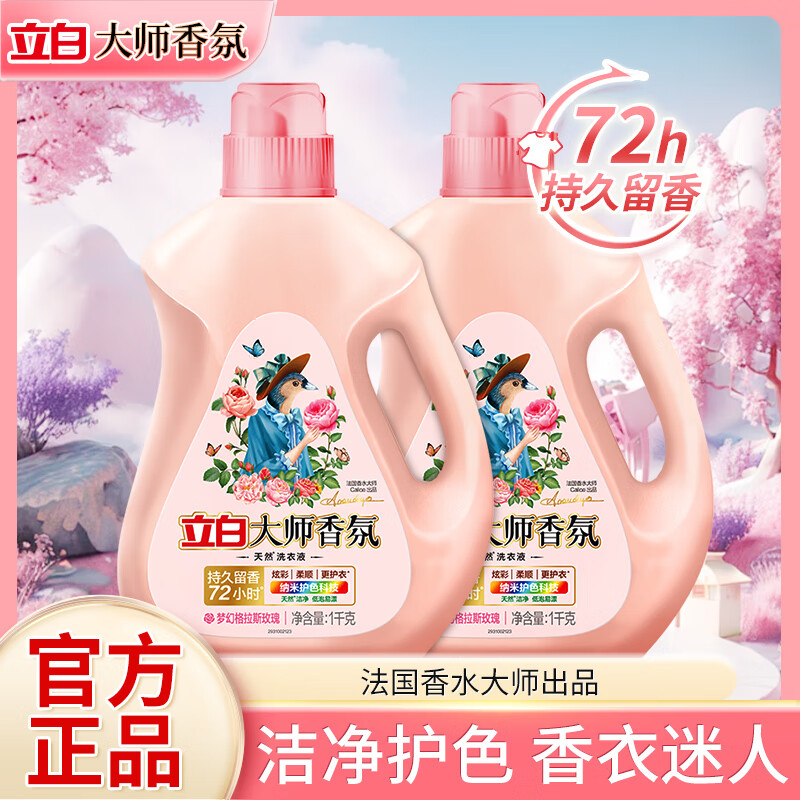 立白大师香氛洗衣液玫瑰花香深层洁净护色持久留香72小时低泡易漂洗 【4斤】大师香氛洗衣液1kg*2瓶