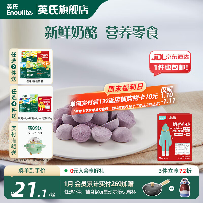 英氏【4阶专区】婴幼儿零辅食 泡芙米饼干奶酪 12-18月龄宝宝零食 忆小口奶酪球蓝莓味