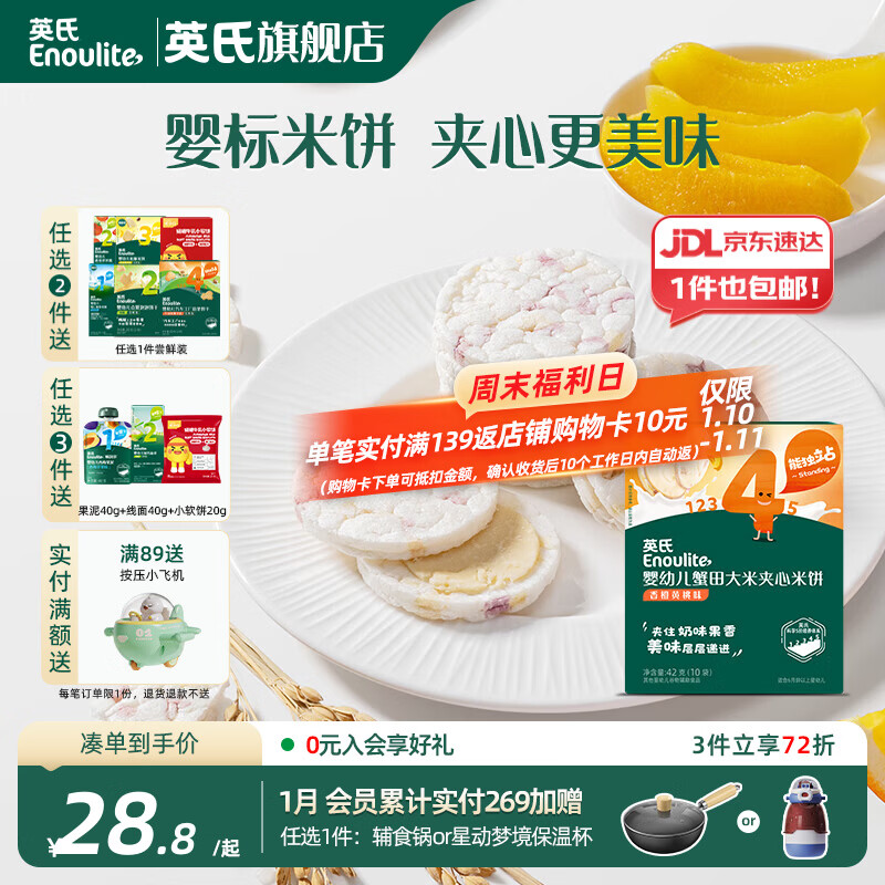 英氏【4阶专区】婴幼儿零辅食 泡芙米饼干奶酪 12-18月龄宝宝零食 夹心米饼香橙黄桃味