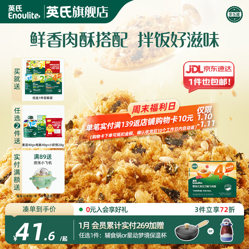 英氏【4阶专区】婴幼儿零辅食 泡芙米饼干奶酪 12-18月龄宝宝零食 芝麻海苔牛肉酥