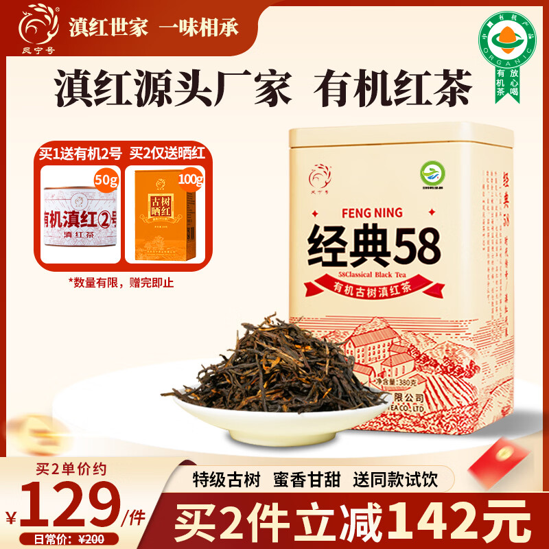 凤宁号红茶经典58特级凤庆滇红茶云南有机古树滇红金针2025新茶叶自己喝 【升级款】单罐装380g
