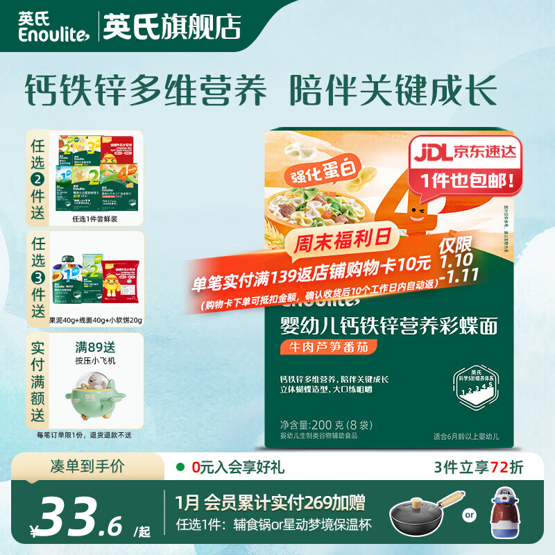 英氏【4阶专区】婴幼儿零辅食 泡芙米饼干奶酪 12-18月龄宝宝零食 彩蝶面牛肉芦笋番茄味200g