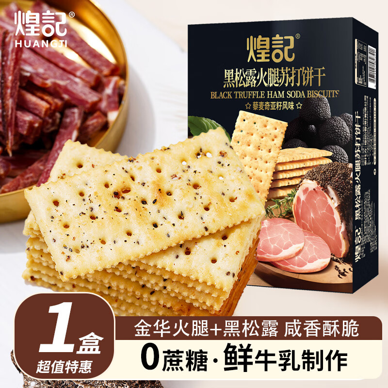 煌记黑松露火腿苏打饼干薄脆早餐代餐0蔗糖办公室孕妇零食休闲下午茶 黑松露火腿苏打饼干118g*1盒