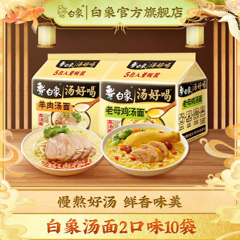 白象 汤好喝方便面老母鸡汤招牌猪骨泡面组合方便速食多口味袋装整箱 老母鸡汤+羊肉汤面共10袋1095g