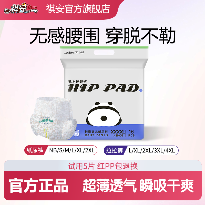 祺安T1熊猫乳木果油宝宝护臀系列超薄透气新生儿尿裤拉拉裤成长裤 【小包装】拉拉裤4XL码16片