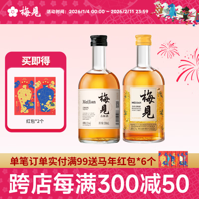 梅见12度双梅混酿金桂桂花青梅原味梅见梅子酒多口味组合微醺果酒送礼 原味330ml+金桂330ml