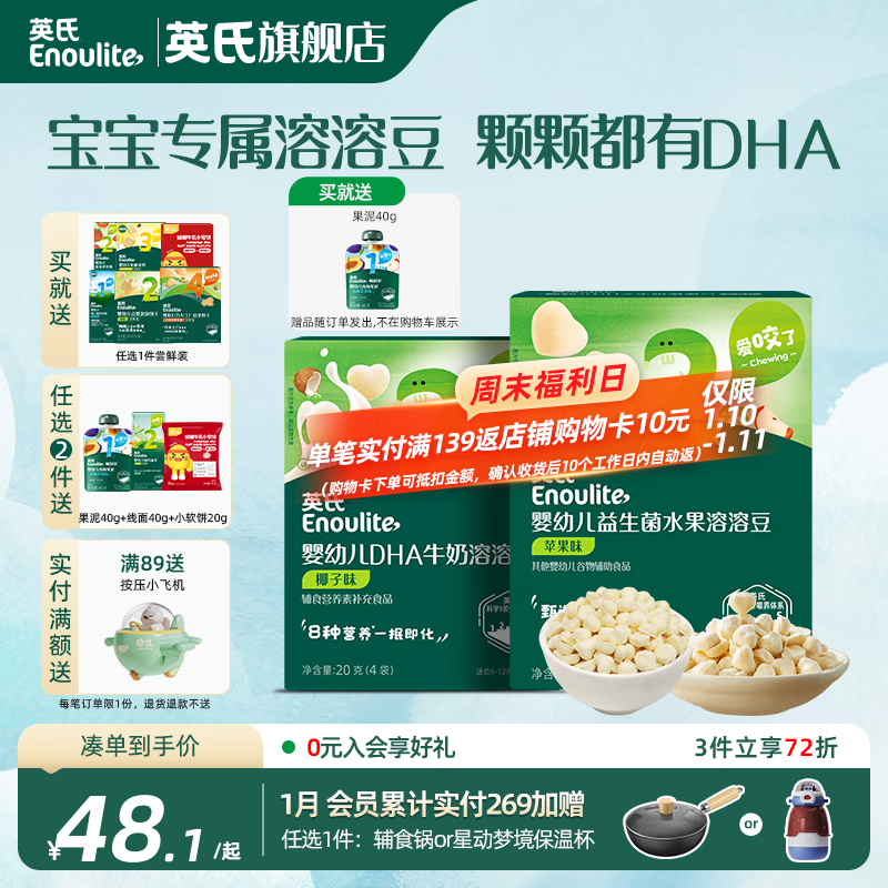 英氏(Engnice)【溶豆专区】溶豆婴幼儿零食水果益生菌DHA牛奶6个月以上 2阶(椰子味20g+草莓味20g)