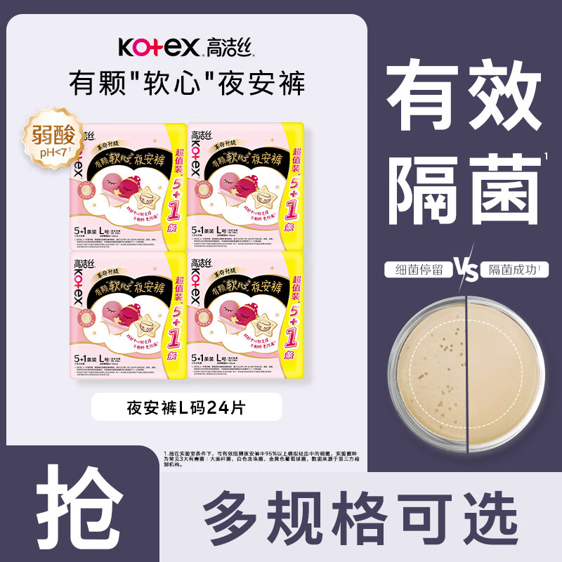 高洁丝【品牌直供】夜安裤裤型卫生巾安睡裤安心裤超长夜用姨妈巾防漏 L 24条 100-140斤 蜜桃夜安裤 默认