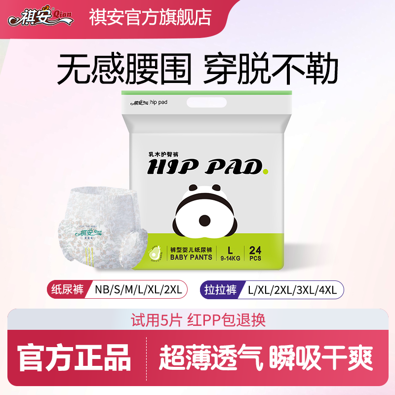 祺安T1熊猫乳木果油宝宝护臀系列超薄透气新生儿尿裤拉拉裤成长裤 【小包装】拉拉裤L码24片
