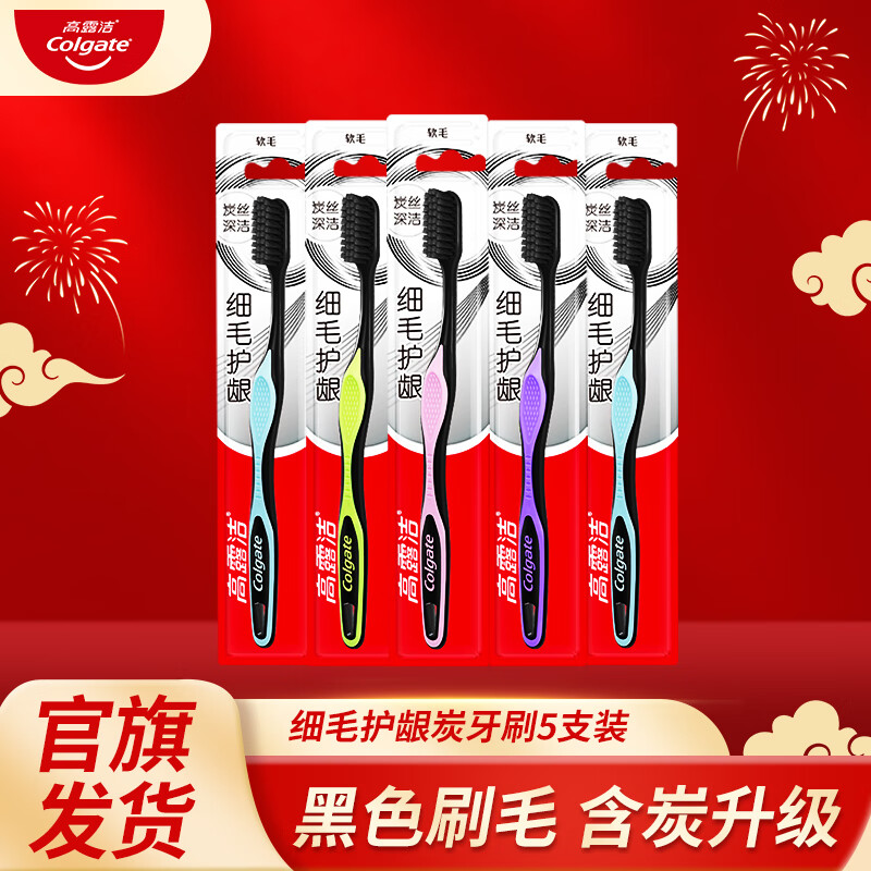 高露洁细毛护龈牙刷超洁净牙刷超细软毛中毛硬毛成人旅行套装家庭便携装 细毛护龈 5支