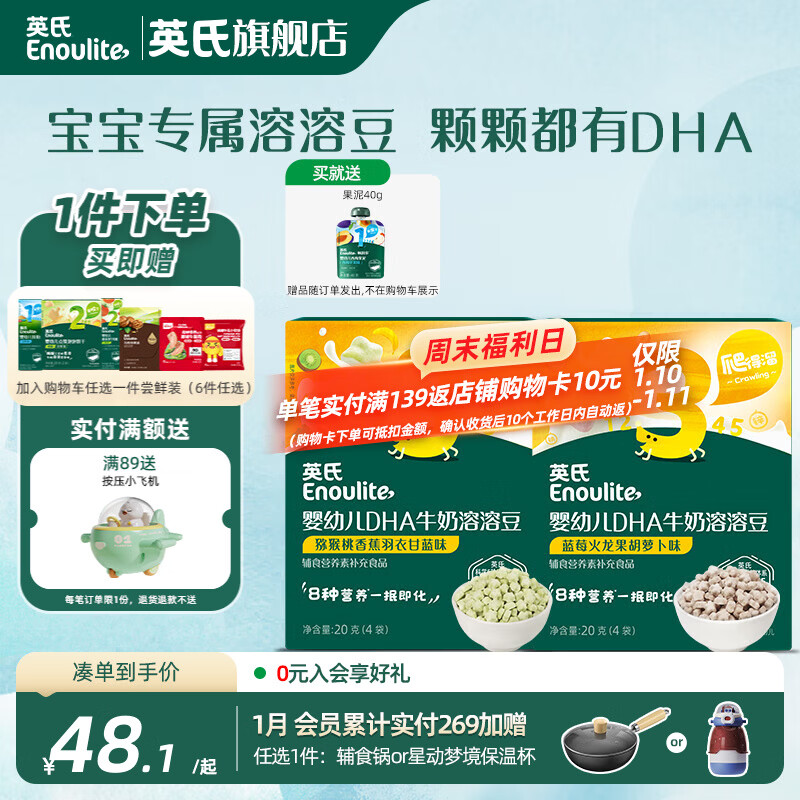 英氏(Engnice)【溶豆专区】溶豆婴幼儿零食水果益生菌DHA牛奶6个月以上 3阶溶豆(蓝莓20g+猕猴桃20g)