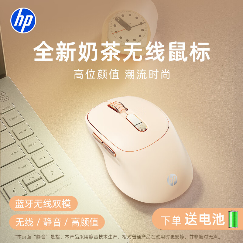 惠普(HP)无线鼠标 人体工学学习办公静音游戏便携 台式机笔记本电脑 【升级款-奶茶色】蓝牙无线双模