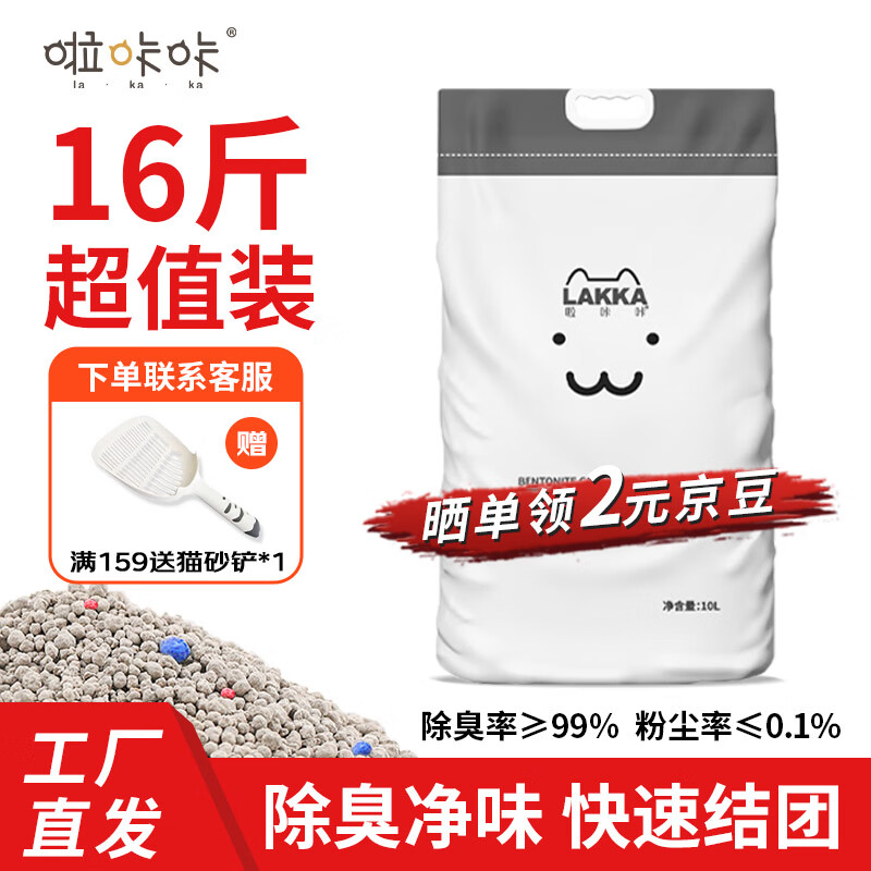啦咔咔猫砂膨润土低尘除味结团猫砂猫咪用品几乎无尘猫砂 膨润土猫砂【工厂直发】16斤装