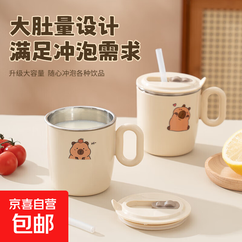 户外野餐儿童水杯304家用防烫不锈钢防摔吸管饮水杯子 一个装