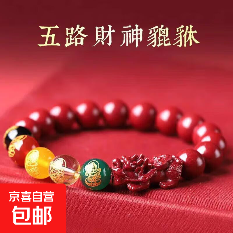 朱砂紫金砂貔貅五路财神手串招财转运男女通带手链 珠子直径卡10毫米