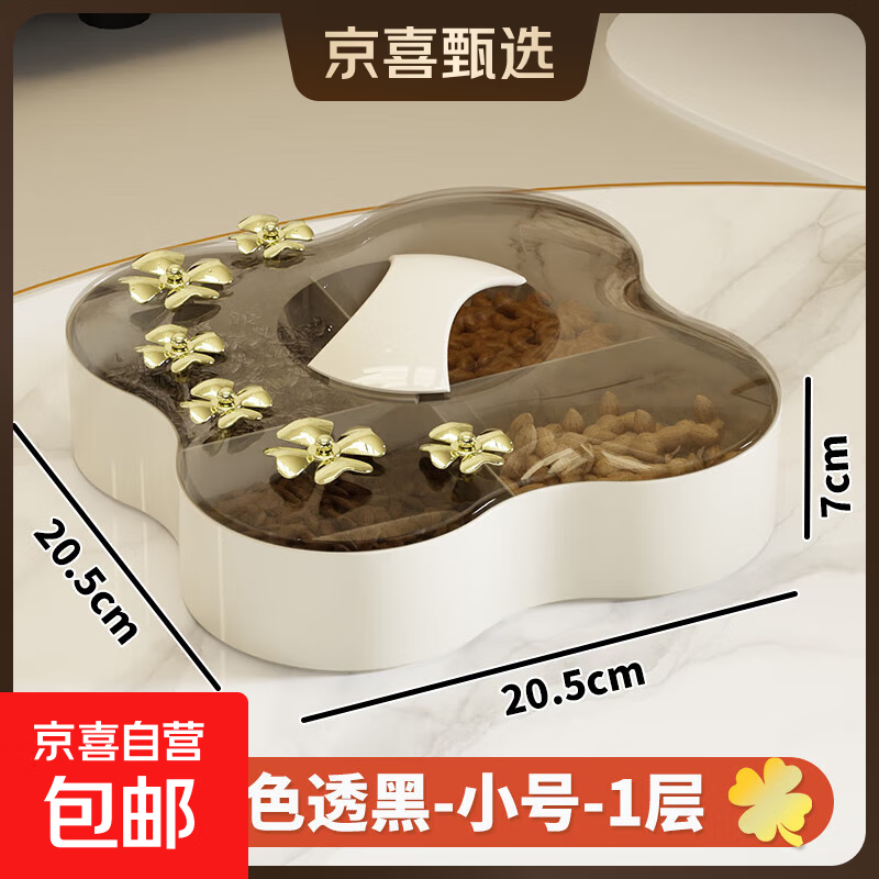 京东物流 果盘家用客厅茶几糖果盒年货新年过年干果盘水果盘 白茶透 小1层