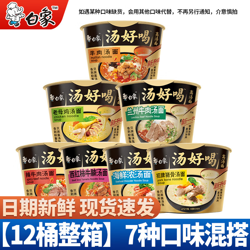 白象方便面汤好喝桶面桶装整箱7口味混搭速食泡面批发免煮速食 【12桶整箱】多口味混合约1400g