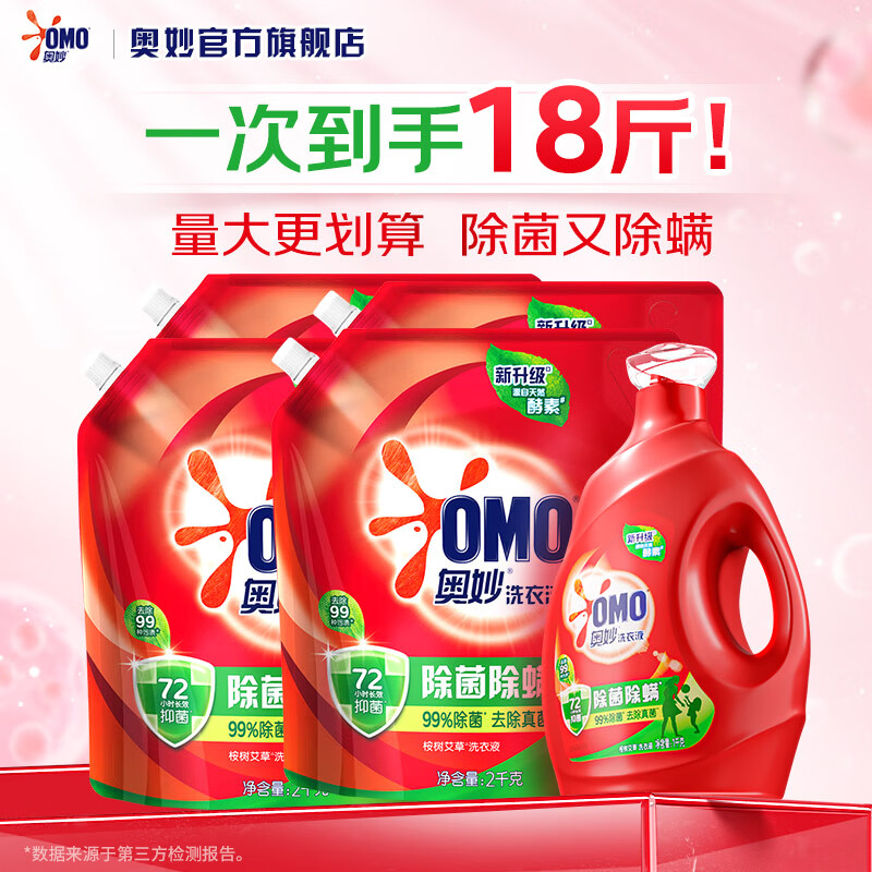 奥妙洗衣液除菌除螨去污渍家用机洗72小时抑菌持久留香宿舍手洗补充装 【实惠5件套】18斤
