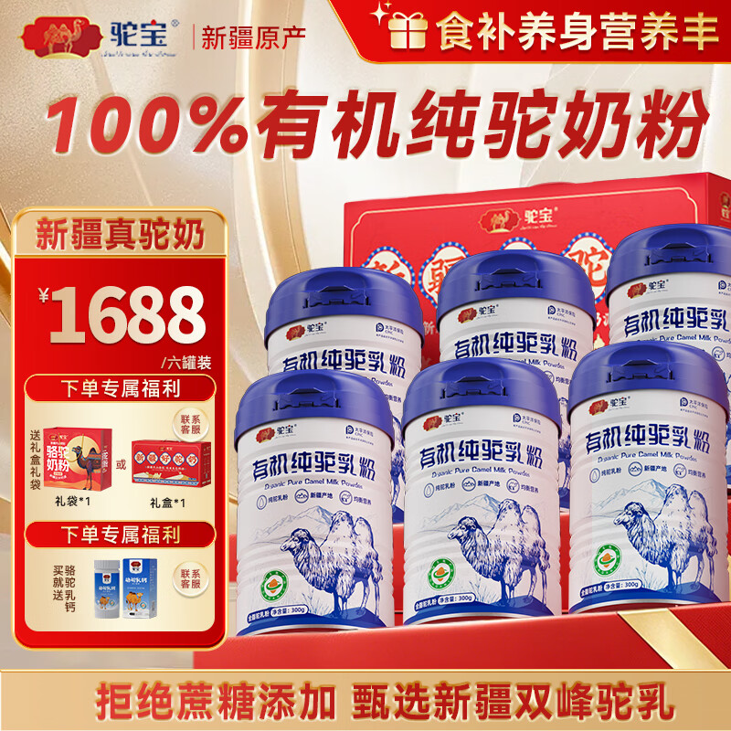 驼宝【复合营养粉】驼宝益生菌骆驼粉无蔗糖中老年儿童青少年成人驼粉 纯驼乳粉6罐装【300g*6周期装】