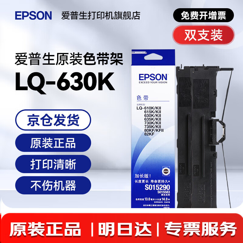 爱普生(EPSON)原装色带LQ-630k 610K LQ-615K 615KII 635K 730K 735K 80kf 82kf 针式打印机S015290带框黑色带芯 色带架【双支装 买一备一】
